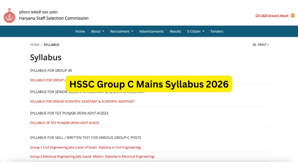 HSSC Group C Mains Syllabus 2026-Exam Pattern, Subject-Wise Topics & Weightage.The Haryana Staff Selection Commission (HSSC) has officially released the HSSC Group C Mains Syllabus 2026 for candidates who have…