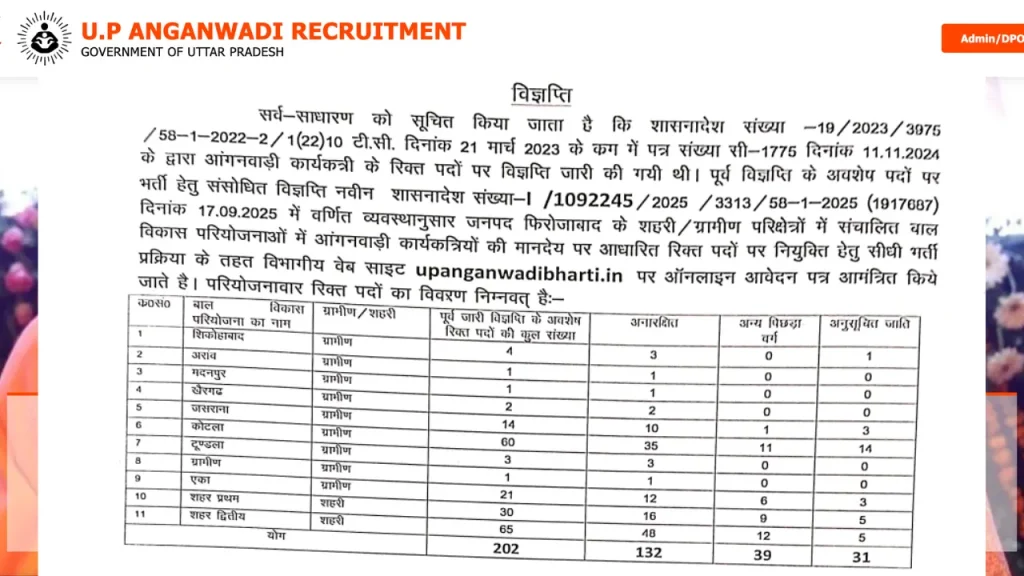 UP Anganwadi Recruitment 2026: Apply for Anganwadi Worker Posts.The Uttar Pradesh Anganwadi Recruitment 2026 has officially started, offering a significant opportunity for women candidates seeking government jobs at the grassroots level. The Integrated Child Development Services (ICDS), Firozabad has released the notification for 202 Anganwadi Worker posts, and the online application process is currently active.